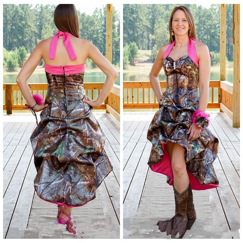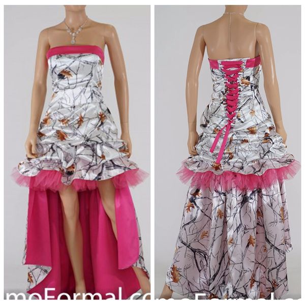 Low Price Pink Camo Wedding Dress Hot Pink High Low Prom Dress